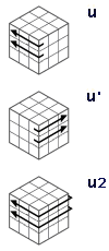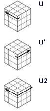 U means that the top surface is rotated 90 degrees clockwise. It is easy to understand that U‘ means to rotate 90 degrees counterclockwise, U2 means to rotate the top surface 180 degrees, that is, 2 U, and so on.